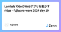 - 12/10LambdaでGoのWebアプリを動かす ridgeLambdaでGoのWebアプリを動かす ridge - fujiwara-ware 2024 day 10