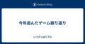- 12/9今年遊んだゲーム振り返り今年遊んだゲーム振り返り - いつクリはてブロ