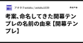- 12/16私が考案、命名したテンプレの由来考案、命名してきた開幕テンプレの名前の由来 【開幕テンプレ】|アオタクaotaku / aotaku1039
