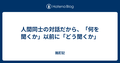- 12/22人間同士の対話だから、「何を聞くか」以前に「どう聞くか」 - 酩酊記人間同士の対話だから、「何を聞くか」以前に「どう聞くか」 - 酩酊記