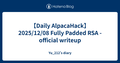 - 12/9【Daily AlpacaHack】2025/12/08 Fully Padded RSA - official writeup - Yu_212’s diary