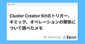- 12/24Cluster Creator Kitのトリガー、ギミック、オペレーションの関係について調べたメモCluster Creator Kitのトリガー、ギミック、オペレーションの関係について調べたメモ