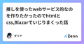 - 12/19推しを使ったwebサービス的なのを作りたかったのでhtmlとcss,Blazorでいじりまくった話推しを使ったwebサービス的なのを作りたかったのでhtmlとcss,Blazorでいじりまくった話