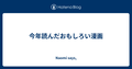 - 12/22なにかの話今年読んだおもしろい漫画 - Naomi says,