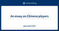 - 12/10An essay on Chinese playersAn essay on Chinese players - yhsxsx3のブログ