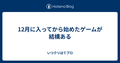 - 12/2412月に入ってから始めたゲームが結構ある12月に入ってから始めたゲームが結構ある - いつクリはてブロ